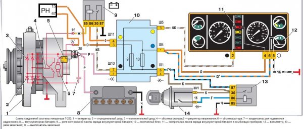 - реле напряжения — регулирует эту характеристику в пределах 13,8 — 14,8 В