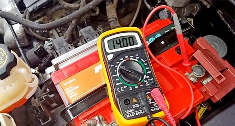 - запустите двигатель и проверьте мультиметром напряжение на клеммах аккумулятора — оно должно быть 13,5 -14,7 В;