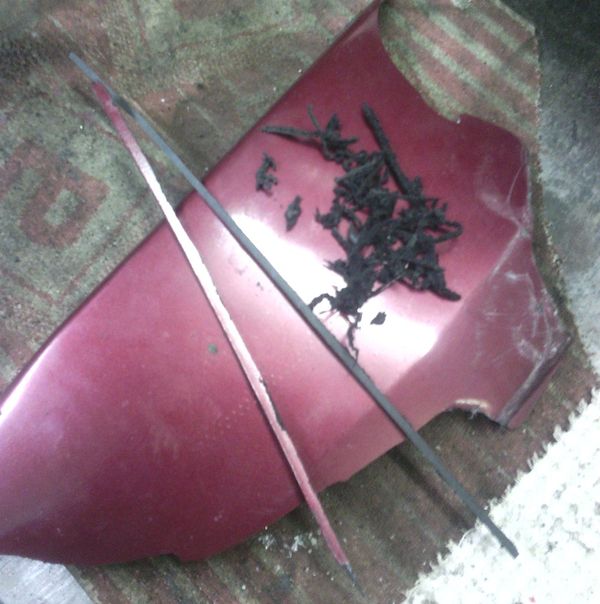- В качестве источника полимера подойдет подкрылок (можно приобрести специальные заплатки). Из него необходимо вырезать полоски-заплатки, шириной 2 см, длиной 15.